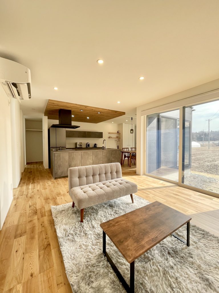 窓の外に広がる田園風景とつながり、四季の移ろいを室内に取り込む、のびやかな暮らしが叶う場所です。