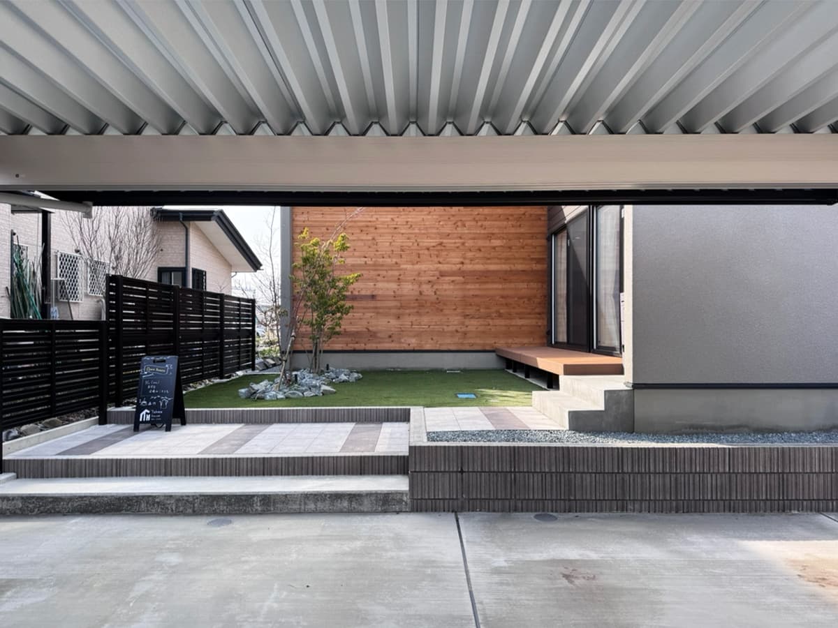 高い吹き抜けと庭へ繋がる開放的な設計、そして「木×無機質」の洗練された素材使いが、日々の暮らしに心地よいゆとりと彩りを与えます。