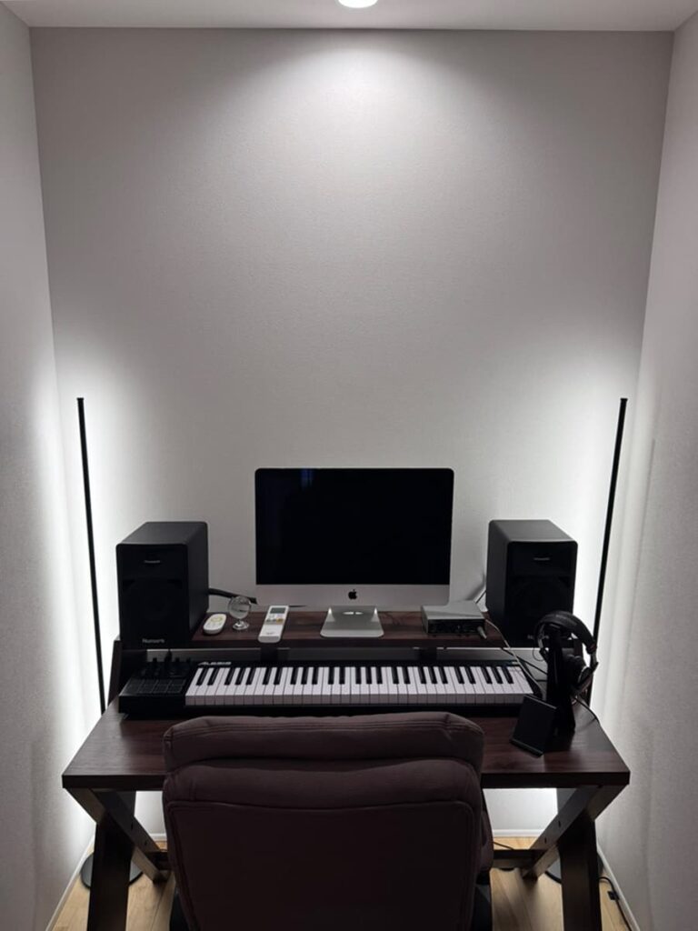 没入感を高めるコンパクトな書斎。間接照明を効果的に配置し、クリエイティブな活動や趣味に集中できる特別な一角です。